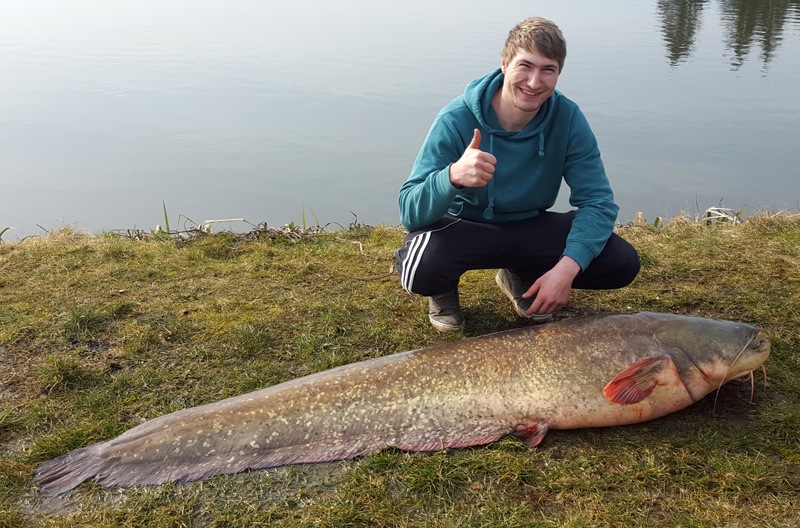 Waller, 202 cm, 53 kg, gefangen von Patrick Kohlmaier im Mathesenweiher am 27.02.2016, Drillzeit 13.30 Uhr bis 14.00 Uhr